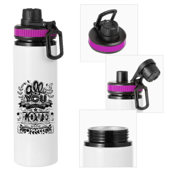 All you need is love, Μεταλλικό παγούρι νερού με καπάκι ασφαλείας, αλουμινίου 850ml