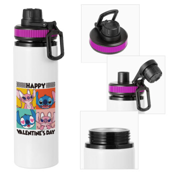Lilo & Stitch Happy valentines day, Μεταλλικό παγούρι νερού με καπάκι ασφαλείας, αλουμινίου 850ml