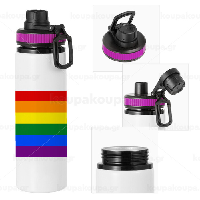 Rainbow flag (LGBT) , Μεταλλικό παγούρι νερού με καπάκι ασφαλείας, αλουμινίου 850ml