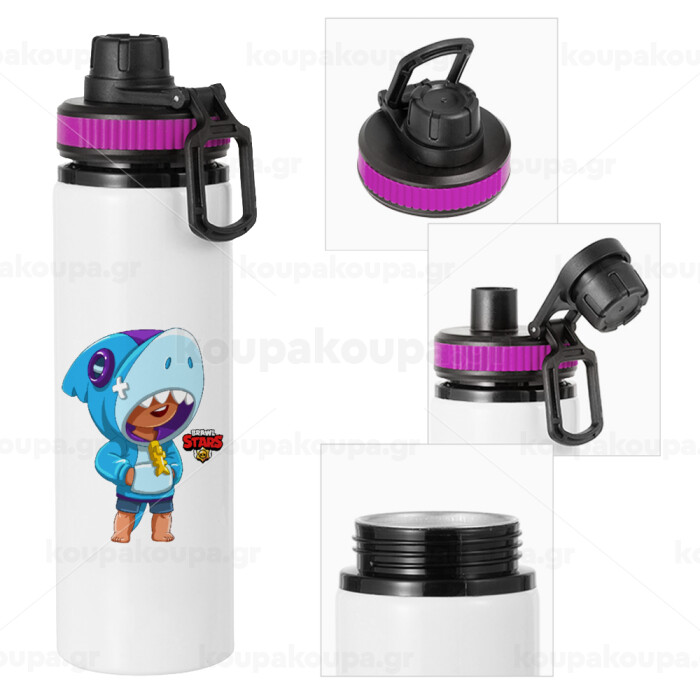 Brawl Stars Leon Shark, Μεταλλικό παγούρι νερού με καπάκι ασφαλείας, αλουμινίου 850ml