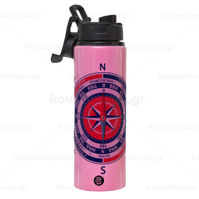 Ανεμολόγιο χάρτης πυξίδα ναυτικού, Μεταλλικό παγούρι νερού με καπάκι ασφαλείας, αλουμινίου 850ml