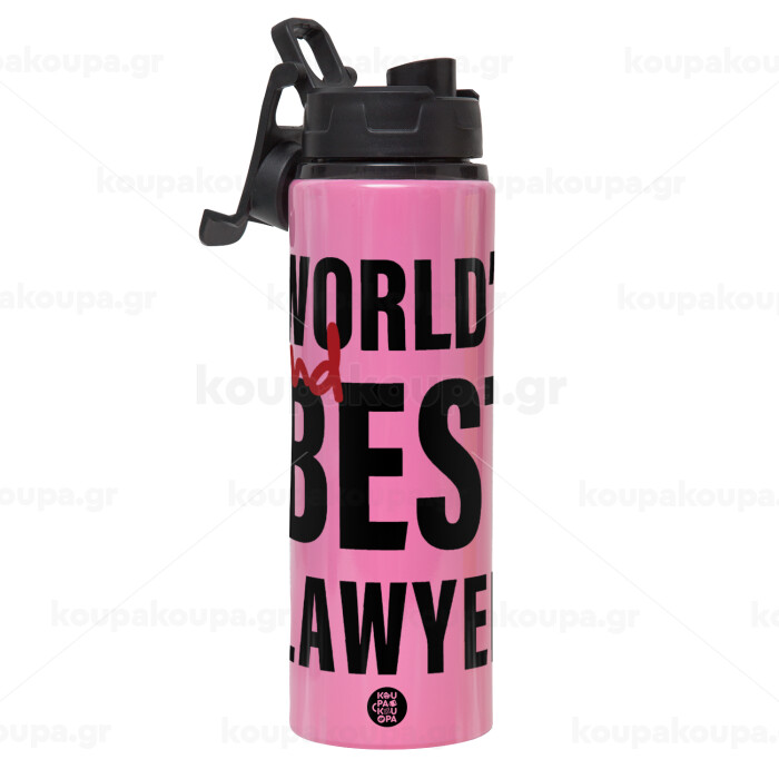 2nd, World Best Lawyer , Μεταλλικό παγούρι νερού με καπάκι ασφαλείας, αλουμινίου 850ml
