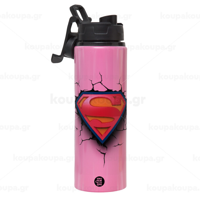 Superman cracked, Μεταλλικό παγούρι νερού με καπάκι ασφαλείας, αλουμινίου 850ml