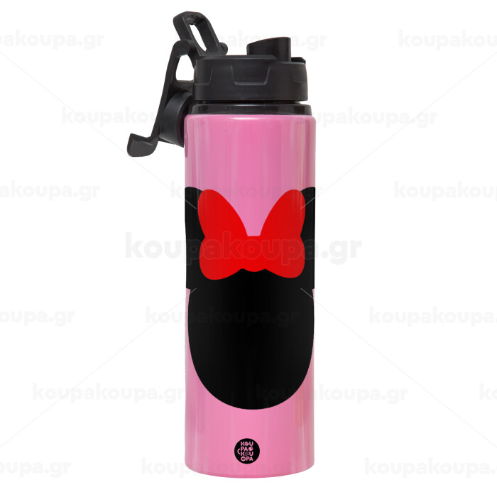 Minnie head, Μεταλλικό παγούρι νερού με καπάκι ασφαλείας, αλουμινίου 850ml