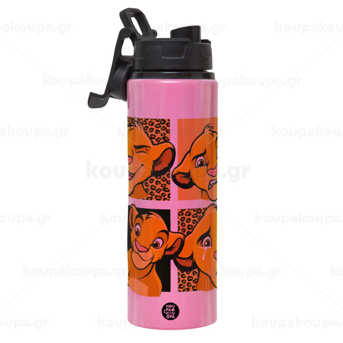 Simba, lion king, Μεταλλικό παγούρι νερού με καπάκι ασφαλείας, αλουμινίου 850ml