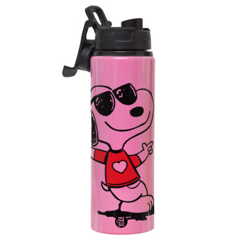 Snoopy καρδούλα, Μεταλλικό παγούρι νερού με καπάκι ασφαλείας, αλουμινίου 850ml