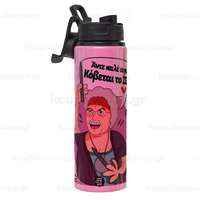 Αντε καλέ, σιγά, κόβεται το σέξ ;, Μεταλλικό παγούρι νερού με καπάκι ασφαλείας, αλουμινίου 850ml