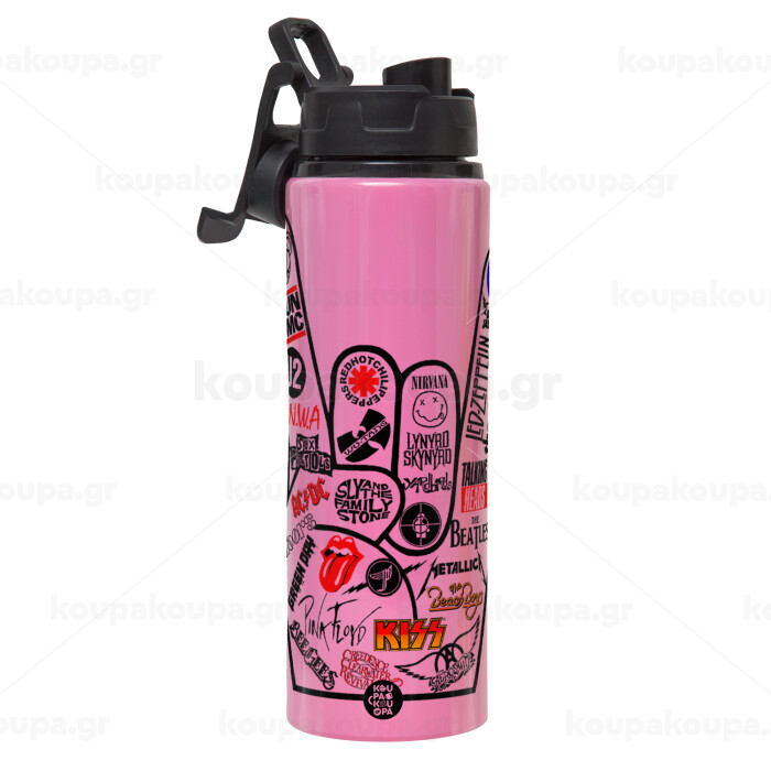 Best Rock Bands hand, Μεταλλικό παγούρι νερού με καπάκι ασφαλείας, αλουμινίου 850ml