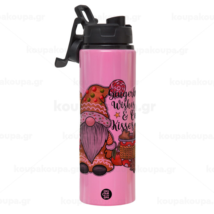 Gingerbread Wishes, Μεταλλικό παγούρι νερού με καπάκι ασφαλείας, αλουμινίου 850ml