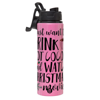 I just want to drink hot cocoa and watch christmas movies, Μεταλλικό παγούρι νερού με καπάκι ασφαλείας, αλουμινίου 850ml