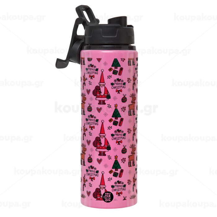 Santas, Deers & Trees, Μεταλλικό παγούρι νερού με καπάκι ασφαλείας, αλουμινίου 850ml