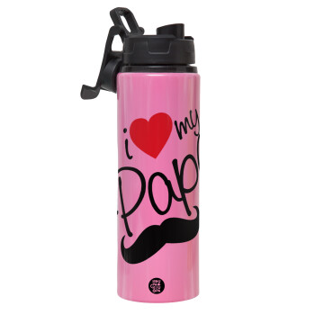 I Love my papa, Μεταλλικό παγούρι νερού με καπάκι ασφαλείας, αλουμινίου 850ml