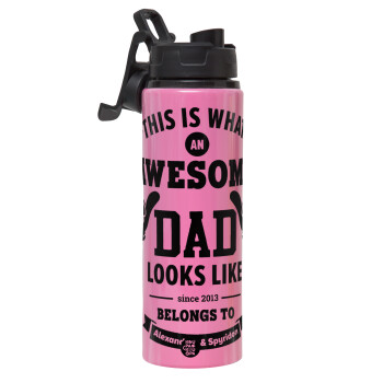This is what an Awesome DAD looks like, Μεταλλικό παγούρι νερού με καπάκι ασφαλείας, αλουμινίου 850ml