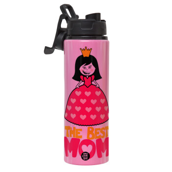 The Best Mom Queen, Μεταλλικό παγούρι νερού με καπάκι ασφαλείας, αλουμινίου 850ml