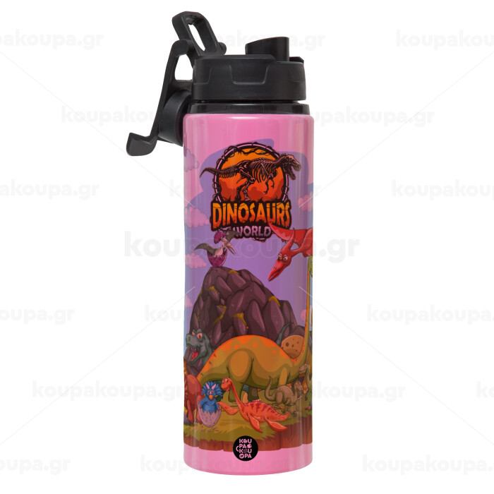 Dinosaur's world, Μεταλλικό παγούρι νερού με καπάκι ασφαλείας, αλουμινίου 850ml