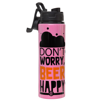 Don't worry BEER Happy, Μεταλλικό παγούρι νερού με καπάκι ασφαλείας, αλουμινίου 850ml
