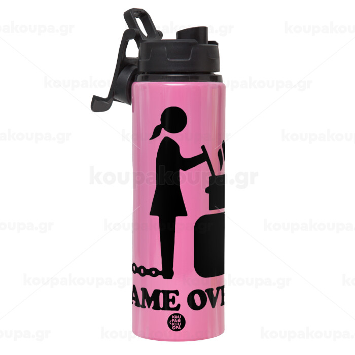 Woman Game Over, Μεταλλικό παγούρι νερού με καπάκι ασφαλείας, αλουμινίου 850ml