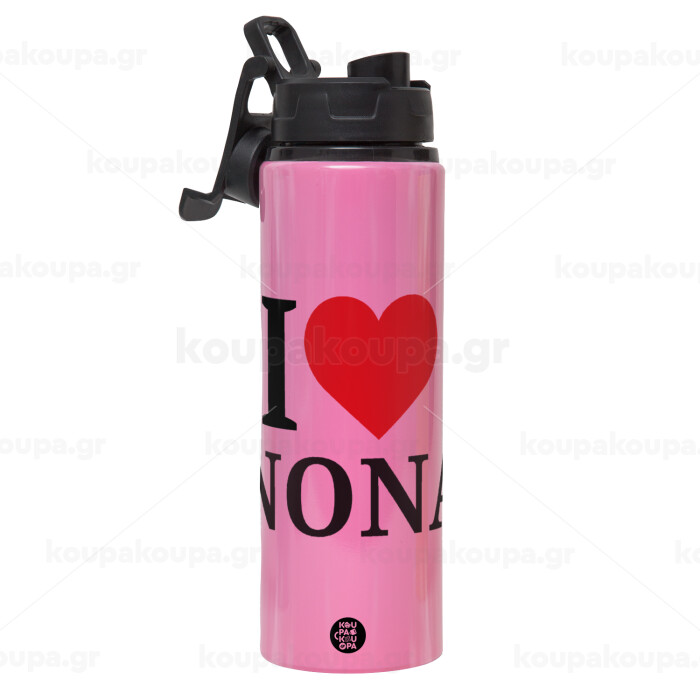 I Love ΝΟΝΑ, Μεταλλικό παγούρι νερού με καπάκι ασφαλείας, αλουμινίου 850ml