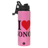I Love ΝΟΝΟΣ, Μεταλλικό παγούρι νερού με καπάκι ασφαλείας, αλουμινίου 850ml