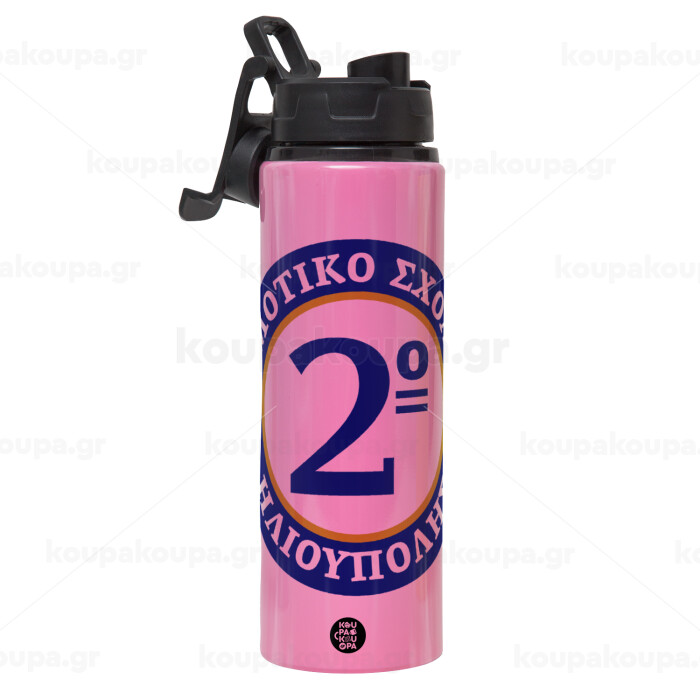 Έμβλημα Σχολικό μπλε/χρυσό, Μεταλλικό παγούρι νερού με καπάκι ασφαλείας, αλουμινίου 850ml