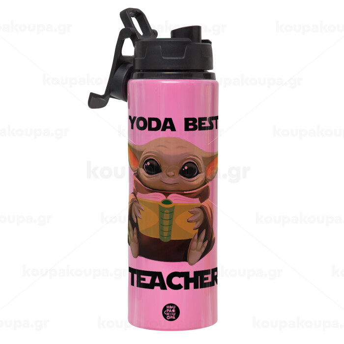 Yoda Best Teacher, Μεταλλικό παγούρι νερού με καπάκι ασφαλείας, αλουμινίου 850ml