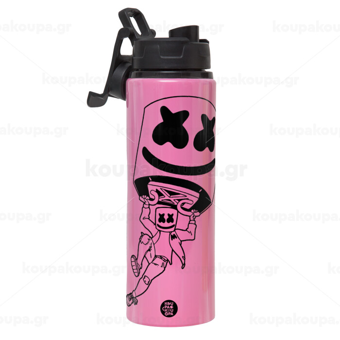 Fortnite Marshmello, Μεταλλικό παγούρι νερού με καπάκι ασφαλείας, αλουμινίου 850ml