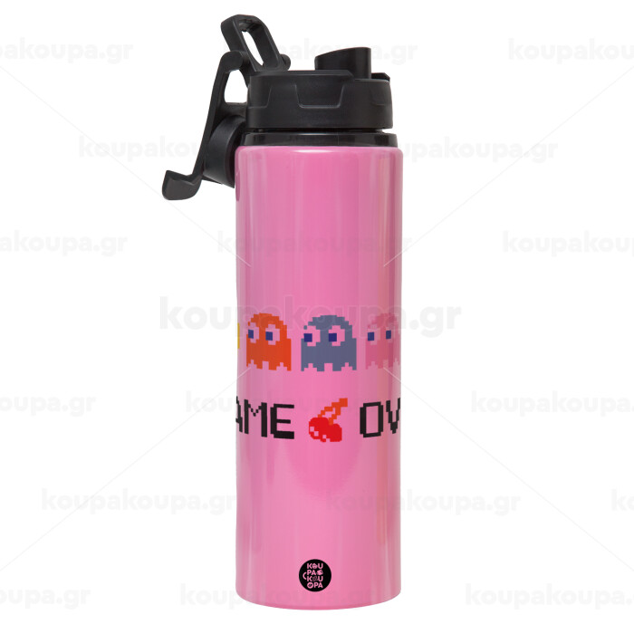 GAME OVER pac-man, Μεταλλικό παγούρι νερού με καπάκι ασφαλείας, αλουμινίου 850ml