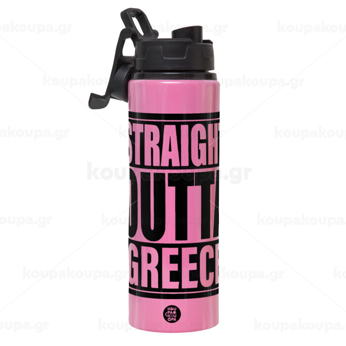 Straight Outta greece, Μεταλλικό παγούρι νερού με καπάκι ασφαλείας, αλουμινίου 850ml