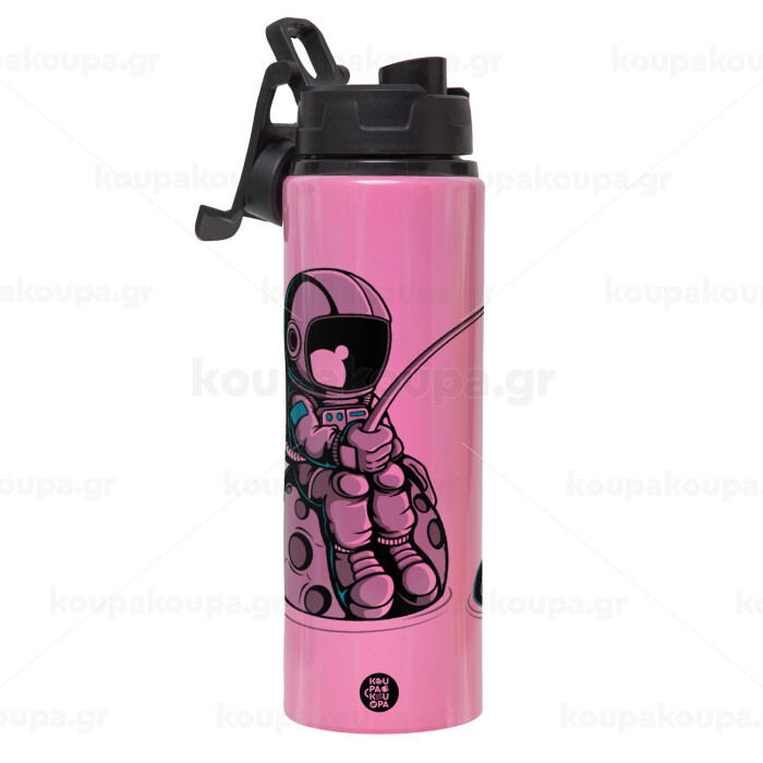 Αστροναύτης ψαρεύει στο διάστημα, Μεταλλικό παγούρι νερού με καπάκι ασφαλείας, αλουμινίου 850ml