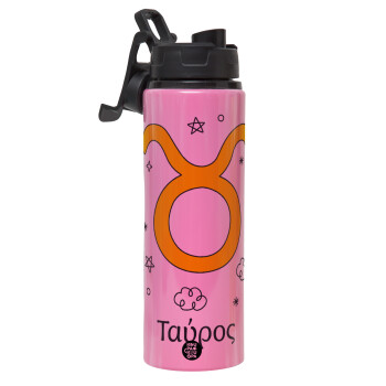 Ζώδια Ταύρος, Μεταλλικό παγούρι νερού με καπάκι ασφαλείας, αλουμινίου 850ml