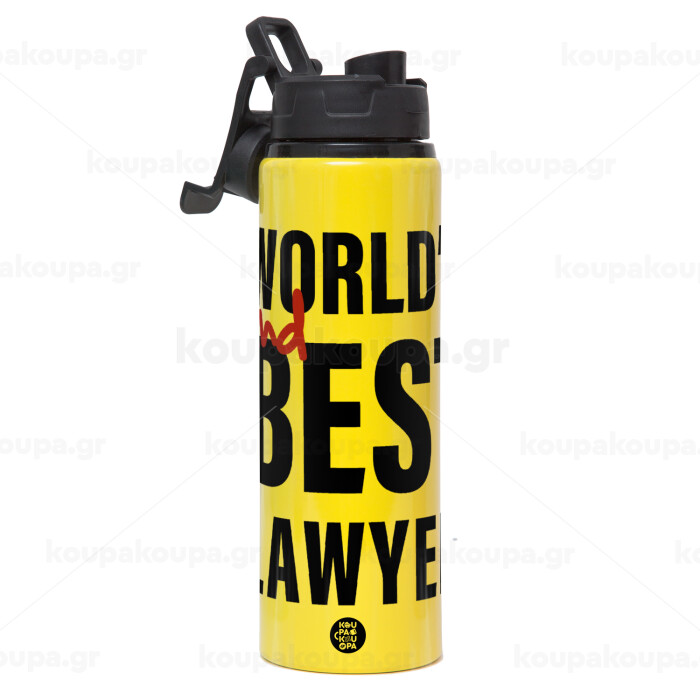 2nd, World Best Lawyer , Μεταλλικό παγούρι νερού με καπάκι ασφαλείας, αλουμινίου 850ml