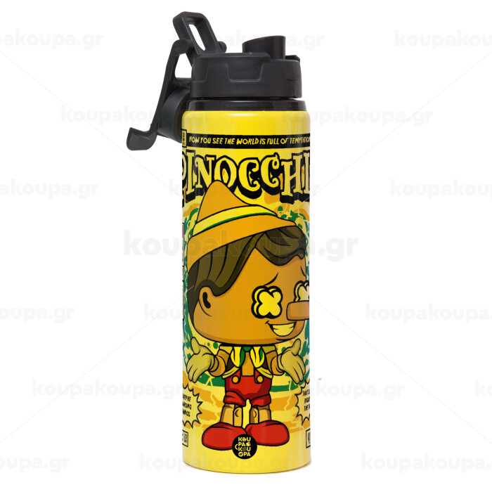 Pinocchio, Μεταλλικό παγούρι νερού με καπάκι ασφαλείας, αλουμινίου 850ml