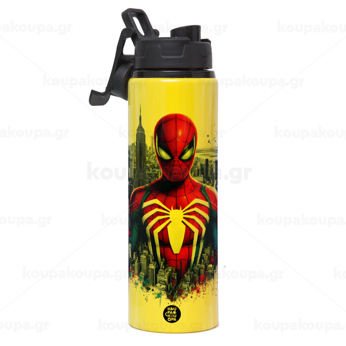 Spiderman City, Μεταλλικό παγούρι νερού με καπάκι ασφαλείας, αλουμινίου 850ml