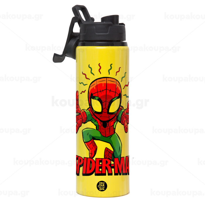 Spiderman flying, Μεταλλικό παγούρι νερού με καπάκι ασφαλείας, αλουμινίου 850ml