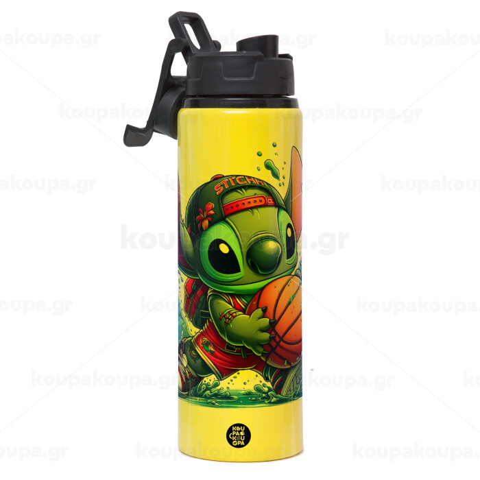 Stitch Basketball, Μεταλλικό παγούρι νερού με καπάκι ασφαλείας, αλουμινίου 850ml