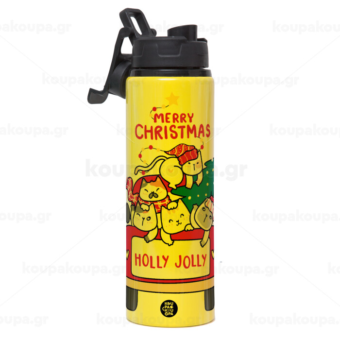 Merry Christmas cats in car, Μεταλλικό παγούρι νερού με καπάκι ασφαλείας, αλουμινίου 850ml