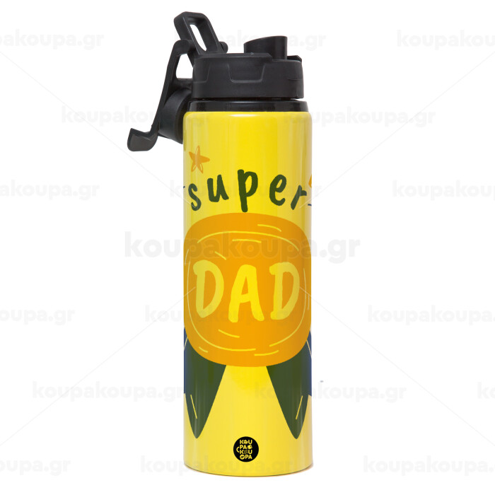 Μπαμπά είσαι για μετάλλιο, Μεταλλικό παγούρι νερού με καπάκι ασφαλείας, αλουμινίου 850ml