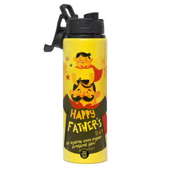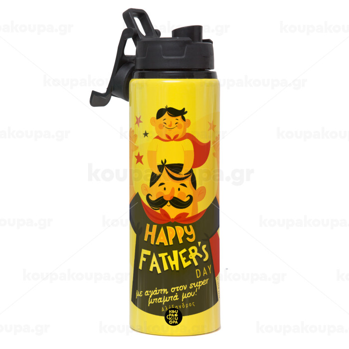 Happy Fathers Day με όνομα, Μεταλλικό παγούρι νερού με καπάκι ασφαλείας, αλουμινίου 850ml