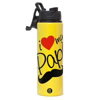 I Love my papa, Μεταλλικό παγούρι νερού με καπάκι ασφαλείας, αλουμινίου 850ml
