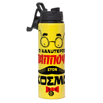 Ο καλύτερος παππούς του κόσμου!, Μεταλλικό παγούρι νερού με καπάκι ασφαλείας, αλουμινίου 850ml