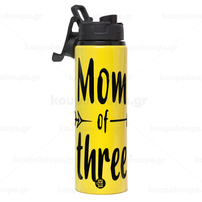 Mom of three, Μεταλλικό παγούρι νερού με καπάκι ασφαλείας, αλουμινίου 850ml