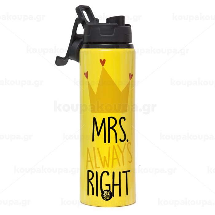 Mrs "Always" right, Μεταλλικό παγούρι νερού με καπάκι ασφαλείας, αλουμινίου 850ml
