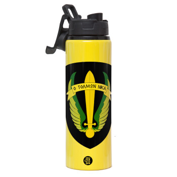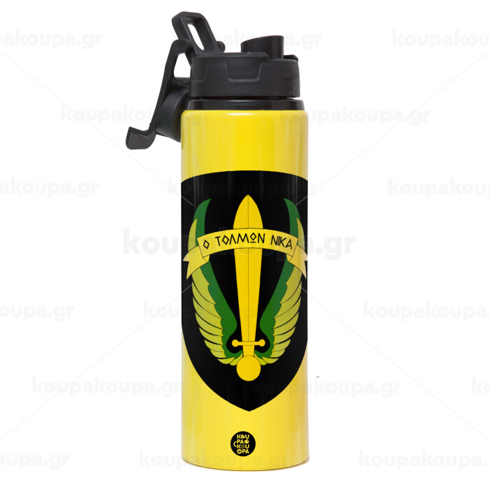 Έμβλημα Μονάδων Καταδρομών Ο Τολμων Νικα - Λοκ, Μεταλλικό παγούρι νερού με καπάκι ασφαλείας, αλουμινίου 850ml