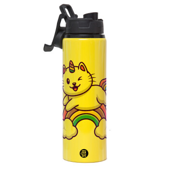 Cute cat unicorn, Μεταλλικό παγούρι νερού με καπάκι ασφαλείας, αλουμινίου 850ml