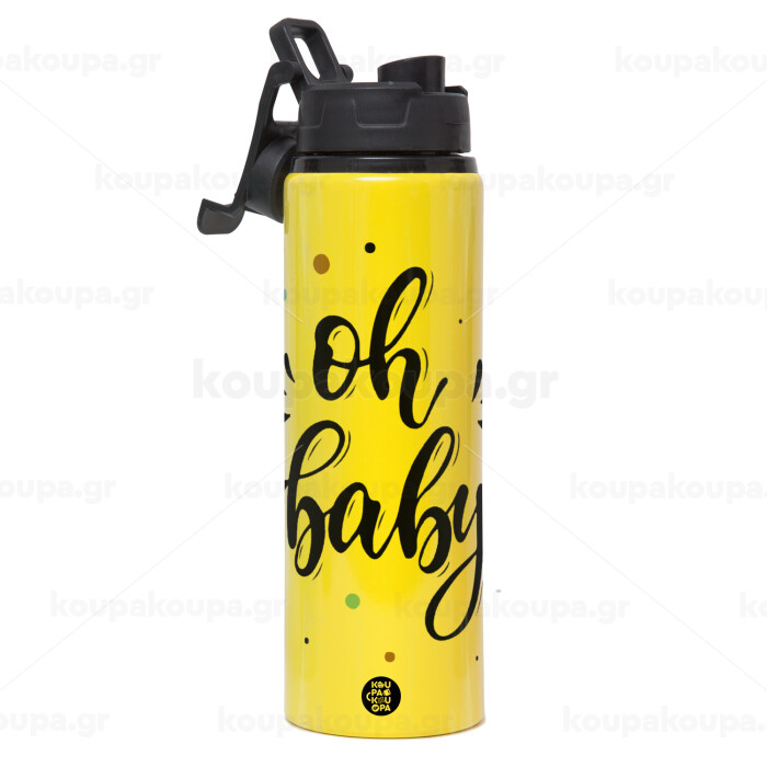 Oh baby, Μεταλλικό παγούρι νερού με καπάκι ασφαλείας, αλουμινίου 850ml