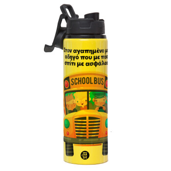 Στον αγαπημένο μου οδηγό που με πάει σπίτι με ασφάλεια!, Μεταλλικό παγούρι νερού με καπάκι ασφαλείας, αλουμινίου 850ml