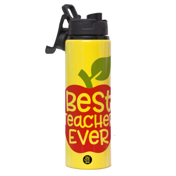 best teacher ever, apple!, Μεταλλικό παγούρι νερού με καπάκι ασφαλείας, αλουμινίου 850ml