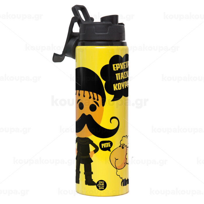 Κρητικός "Έρχεται Πάσχα κουράδι", Μεταλλικό παγούρι νερού με καπάκι ασφαλείας, αλουμινίου 850ml