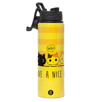 Have a nice day cats, Μεταλλικό παγούρι νερού με καπάκι ασφαλείας, αλουμινίου 850ml