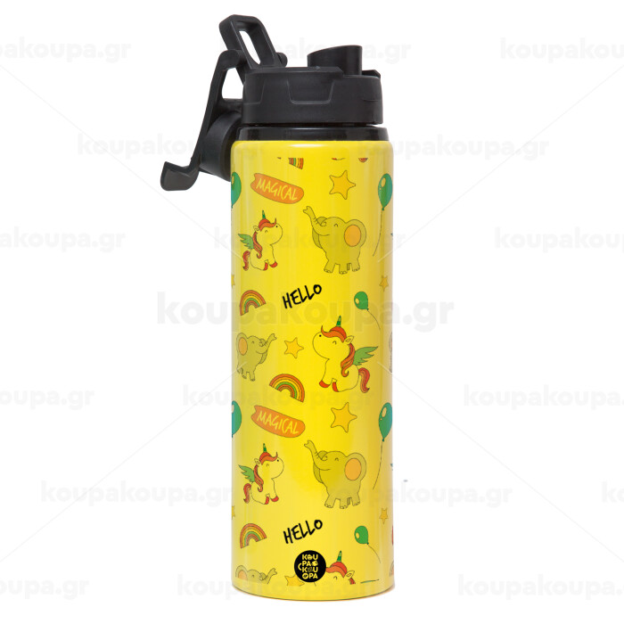 Happy Clouds Doodle, Μεταλλικό παγούρι νερού με καπάκι ασφαλείας, αλουμινίου 850ml